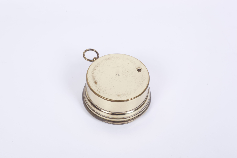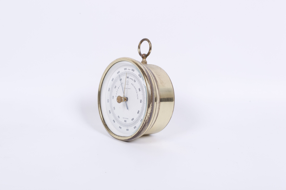 Ce petit baromètre de précision marine, d’un diamètre d’environ 7,5 cm, est un bel instrument alliant charme ancien et fiabilité. Logé dans une boîte joliment travaillée, il se distingue par son élégant verre biseauté et son cadran finement gradué.
